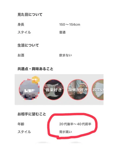 - 見るべきなのは、プロフィール文ではなく「お相手に望むこと」